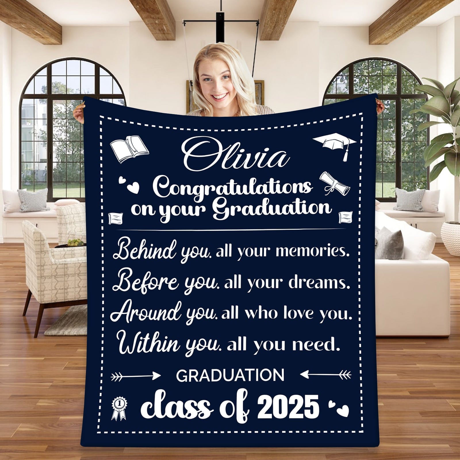 This super soft, fleece blanket is the perfect gift for Graduation, any time of the year! Make his/her Graduation truly memorable by gifting this perfect Keepsake!