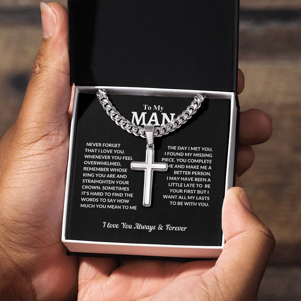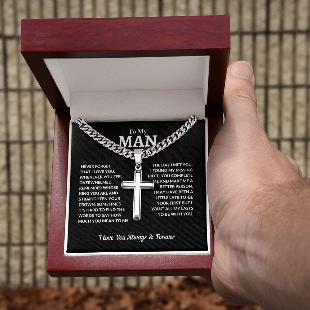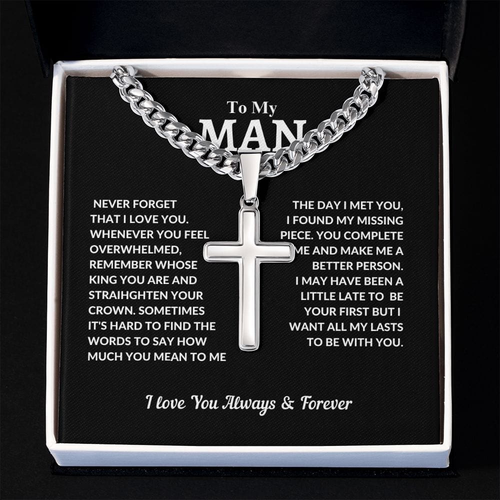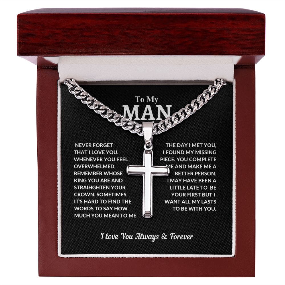 To My Man | Cuban Chain with Artisan Cross Necklace