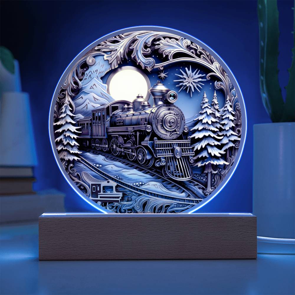 Create a memorable welcome to any room with our Printed Circle Fairy Tale Train Acrylic Plaque. This beautiful plaque is handcrafted using premium acrylic and a vibrant printed design. And the contemporary design wouldn't be complete without its sleek wooden base, elevating the display that will instantly become a conversation starter. Create a memorable presentation when you upgrade to the LED wooden base!