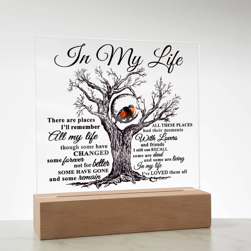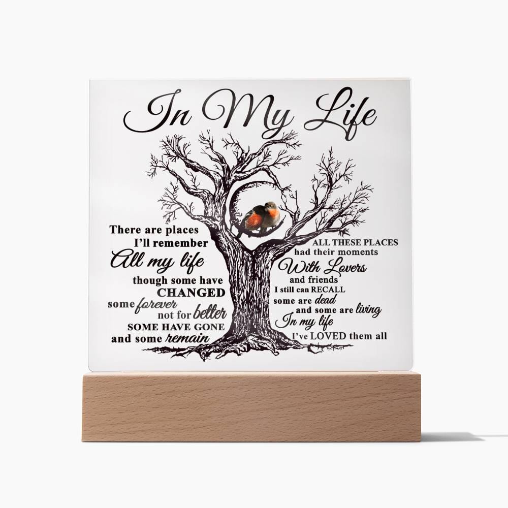 Create a memorable welcome to any room with our Printed Squarer In My Life Acrylic Plaque. This beautiful plaque is handcrafted using premium acrylic and a vibrant printed design. And the contemporary design wouldn't be complete without its sleek wooden base, elevating the display that will instantly become a conversation starter. Create a memorable presentation when you upgrade to the LED wooden base!