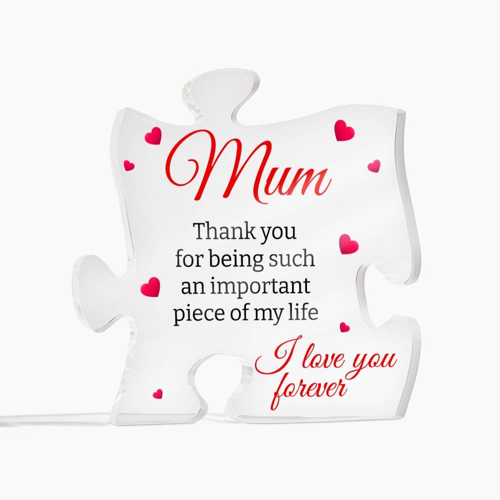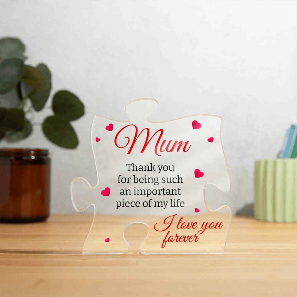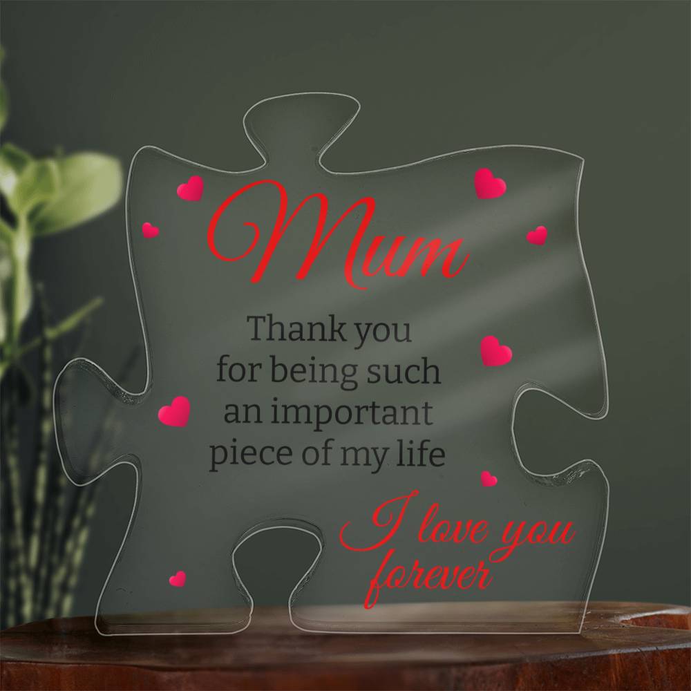 Mum | Important Piece Of My Life | Puzzle Shaped Acrylic Plaque - Gift For Mum